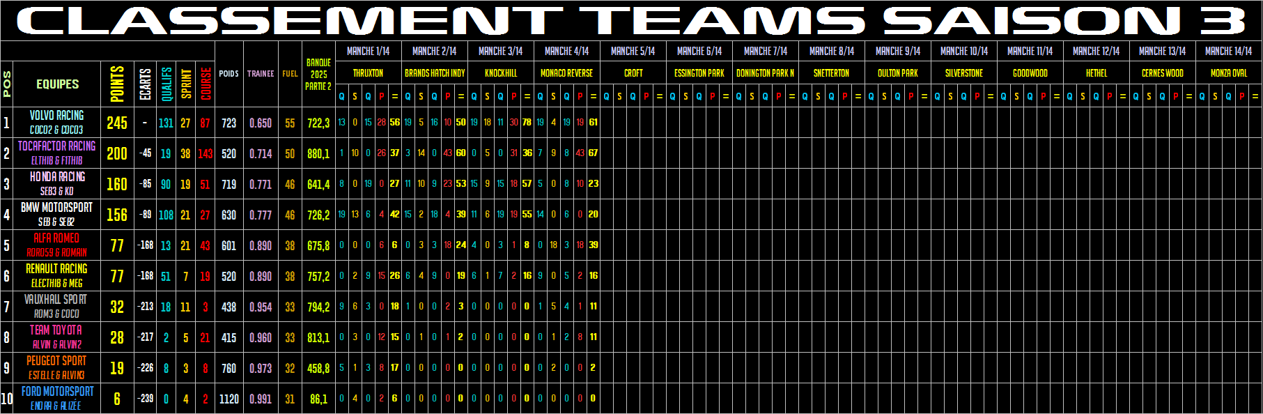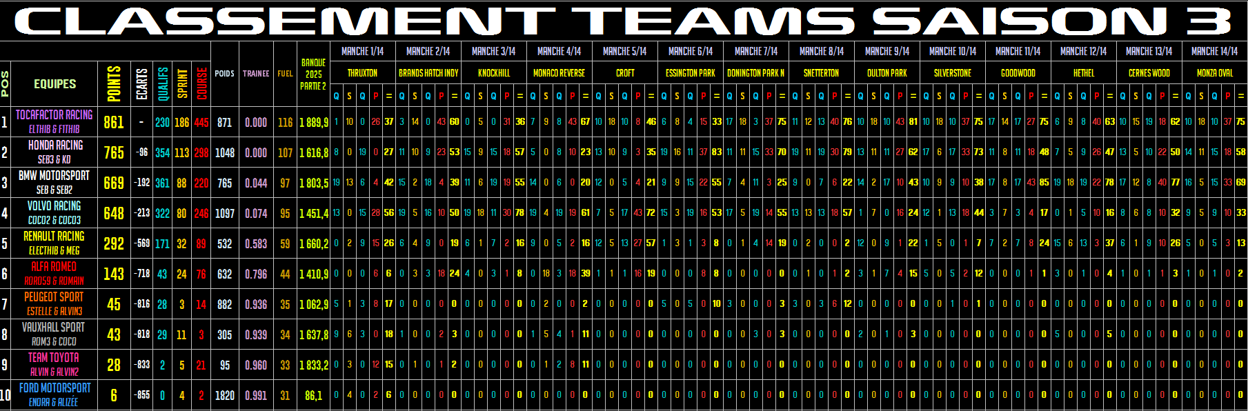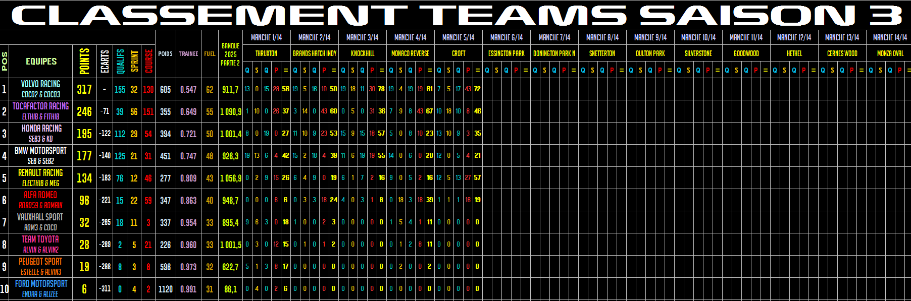 | TocaFactor Forum Index » Classement pilotes et constructeurs |