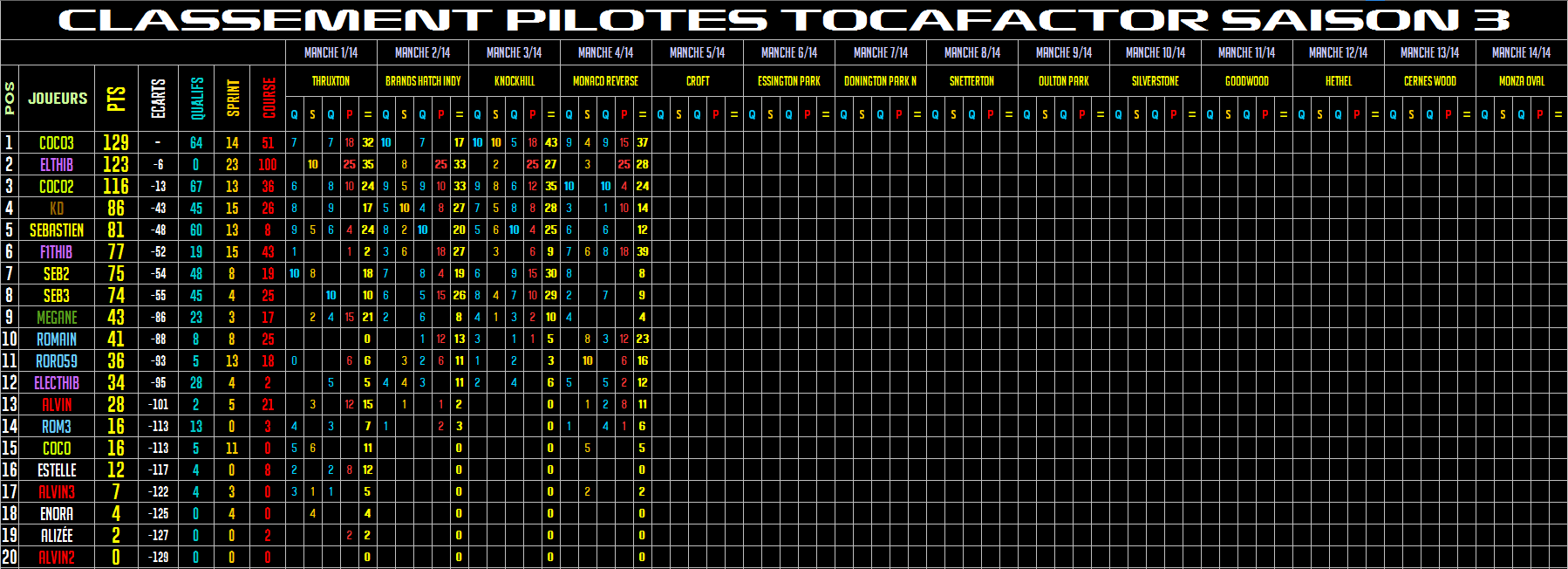 | TocaFactor Forum Index » Classement pilotes et constructeurs |